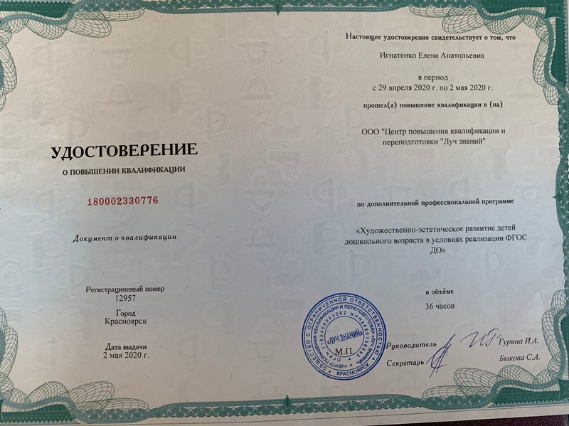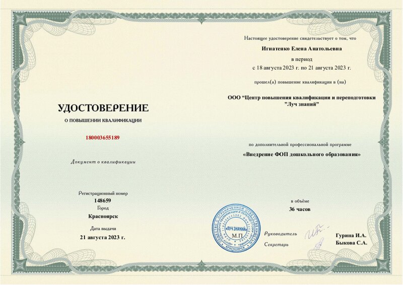 Игнатенко Елены Анатольевны